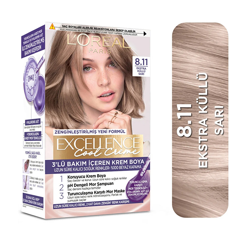 Loreal Paris Excellence Cool Creme - Krem Saç Boyası No: 8.11 Ekstra Küllü Sarı