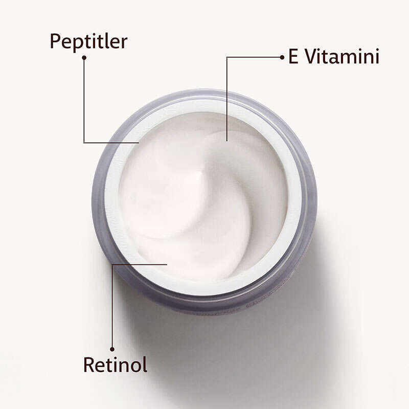 Retinol ve peptitler gibi yaşlanma karşıtı bileşenler, cilt yaşlanmasının görünür belirtileriyle savaşır.