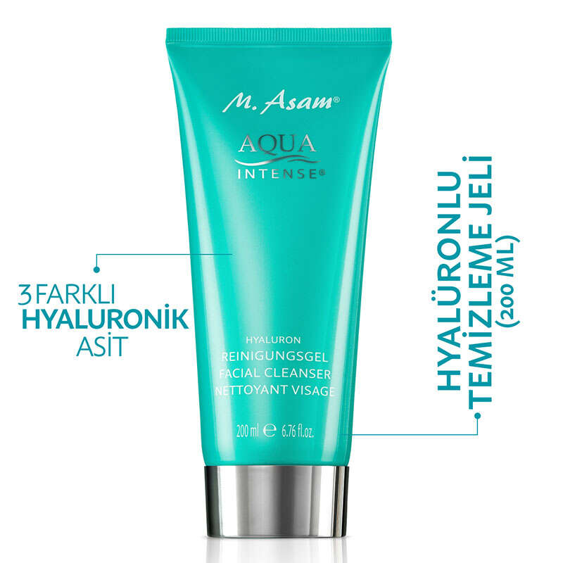 M.Asam Aqua Intense Yoğun Nemlendirici Pürüzsüzleştirici Parfümsüz Hyaluronlu Temizleme Jeli, kapsamlı yüz temizliği, nazik peeling ve yoğun nemlendirme sağlayarak pürüzsüz ve ışıltılı bir görünüm sağlar.