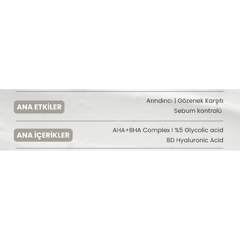 Marine Algae AHA BHA Tonik, cildinizi derinlemesine temizler, arındırır. Gözenekleri temizlemeye ve cildi pürüzsüzleştirmeye çalışır.Uygun Cilt Tipi: