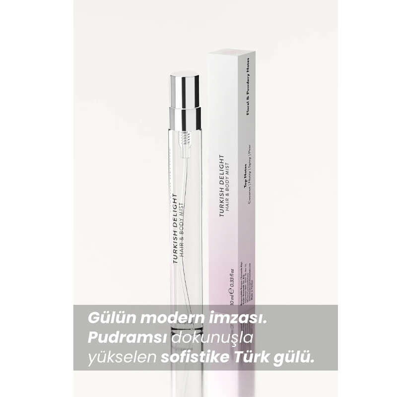 Geleneksel Türk Gülü notalarının modern pudralı dokunuşlarla yeniden yorumlandığı Turkish Delight, saçlarınıza ve teninize tatlı bir zarafet katar.