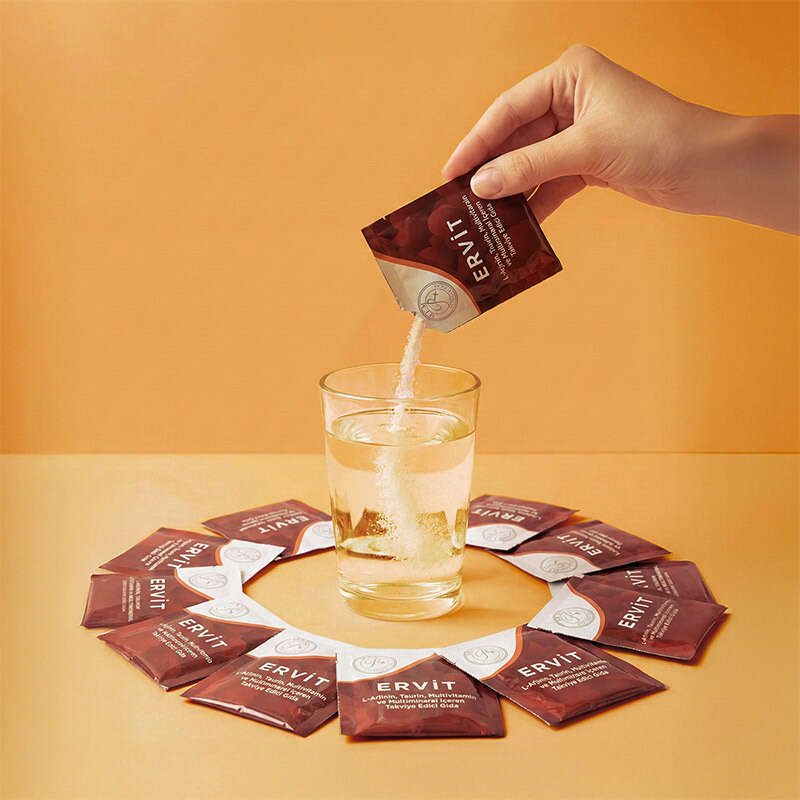 Ervit L-Arjinin, Taurin, Multivitamin ve Multimineral İçeren Takviye Edici Gıda 30 Şase Ürün Markası: