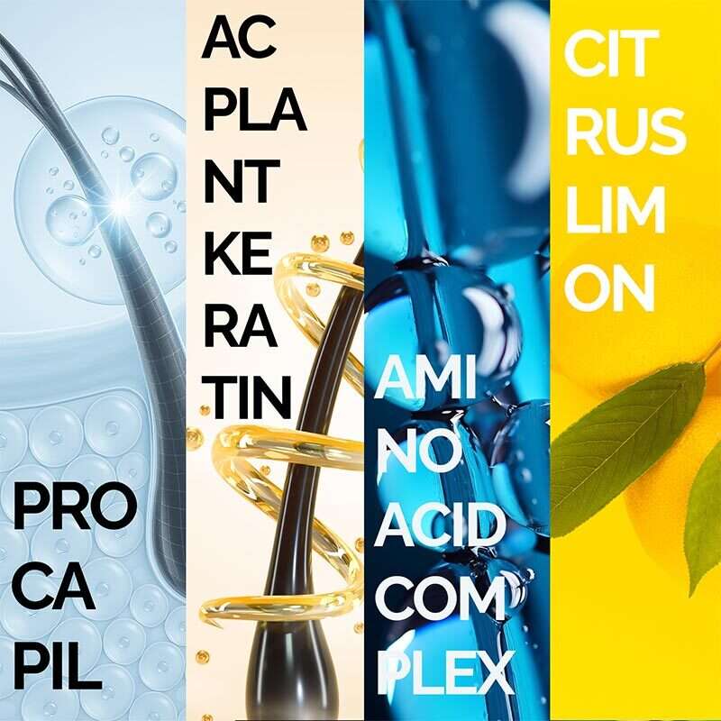 Aqua (Water), Butylene Glycol, Sodium PCA, Glycerin, Panthenol, Niacinamide, Arginine, Parfum (Fragrance), Saccharum Officinarum (Sugarcane) Extract, Apigenin, Oleanolic Acid, Biotinoyl Tripeptide-1, Phenoxyethanol, Tocopheryl Acetate, Aesculus Hippocastanum Seed Extract, Ethylhexylglycerin, Polysorbate 20, Hydroxyethylcellulose, Sodium Acetate, Isopropyl Alcohol, Betaine, Hexylene Glycol, Citrus Limon Fruit Extract, Hydrolyzed Corn Protein, Hydrolyzed Wheat Protein, Hydrolyzed Soy Protein, Sodium Lactate, Pyrus Malus Fruit Extract, PPG-26-Buteth-26, Aspartic Acid, PEG-40 Hydrogenated Castor Oil, PCA, Camellia Sinensis Leaf Extract, Biotin, Hexapeptide-11, Glycine, Alanine, Serine, Valine, Proline, Threonine, Isoleucine, Limonene, Citral, Alpha-Isomethyl Ionone, Histidine, Phenylalanine, Tetrasodium EDTA.