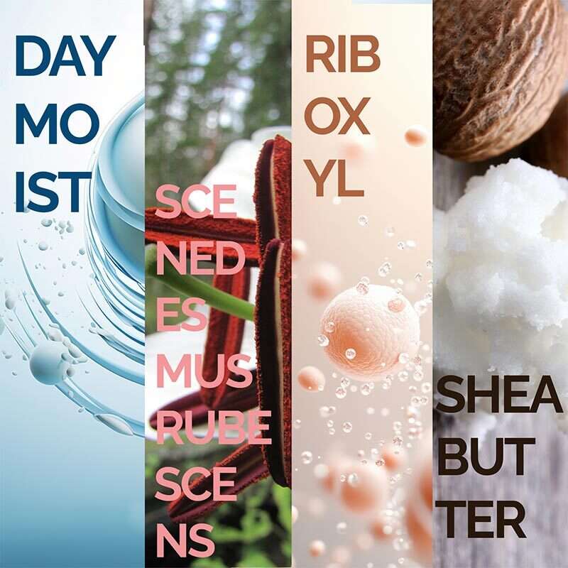 Aqua, Glycerin, Isononyl Isononanoate, Caprylic/Capric Triglyceride, Glyceryl Stearate, C12-15 Alkyl Benzoate, Cyclopentasiloxane, PEG-100 Stearate, Behenyl Alcohol, Sodium Acrylates Copolymer, Lecithin, Dimethicone, Sodium PCA, Cetearyl Alcohol, Diethylamino Hydroxybenzoyl Hexyl Benzoate, Dimethiconol, Phenoxyethanol, Hydrolyzed Corn Starch, Beta Vulgaris Root Extract, Propanediol, Ethylhexyl Triazone, Butylene Glycol, Ribose, Butyrospermum Parkii Butter, Bis-Ethylhexyloxyphenol Methoxyphenyl Triazine, Tocopheryl Acetate, Glycine Soja Seed Extract, Centella Asiatica Leaf Extract, Niacinamide, Glycine Soja Sterols, Bisabolol, Pentylene Glycol, Xanthan Gum, Simmondsia Chinensis Seed Oil, Ozonized Oryza Sativa Callus Culture Extract, Ethylhexylglycerin, Scenedesmus Rubescens Extract, Hydroxyacetophenone, Tocopherol, Citric Acid, Calcium Chloride, Potassium Sorbate.