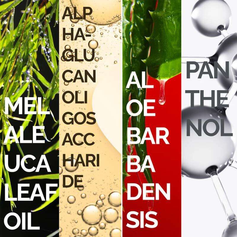 Aqua, Disodium Laureth Sulfosuccinate, Lauryl Glucoside, Cocamidopropyl Betaine, Glycerin, Coco-Glucoside, Glyceryl Oleate, Melaleuca Alternifolia Leaf Oil, Sodium PCA, Panthenol, Polysorbate 20, Bisabolol, PEG/PPG-120/10 Trimethylolpropane Trioleate, Laureth-2, Tocopherol, Hydrogenated Palm Glycerides Citrate, Aloe Barbadensis Leaf Juice, Sodium Benzoate, Potassium Sorbate, Alpha-Glucan Oligosaccharide, Phenoxyethanol, Benzoic Acid, Citric Acid.