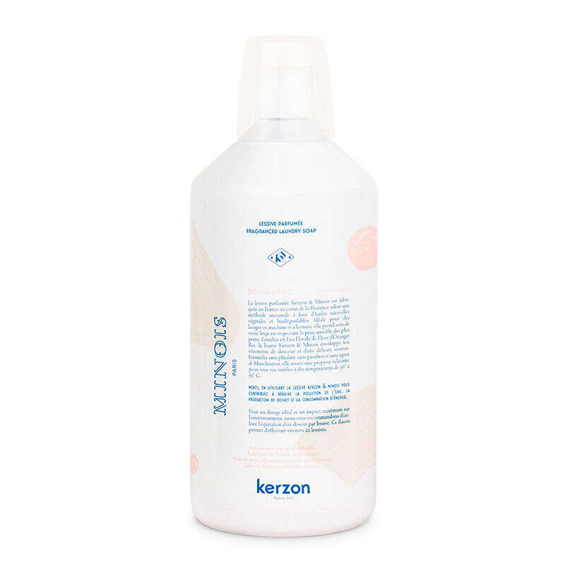 - Organik portakal çiçeği suyuyla zenginleştirilmiş Kerzon x Minois deterjanı, sizin ve çocuklarınızın kıyafetlerini yumuşaklıkla ve Minois'in narin imza kokusuyla sarar.