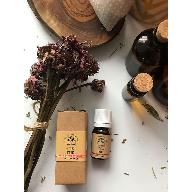 Itır - Sardunya (Pelargonium graveolens) bitkisinin yaprakları distilasyondan geçirilerek tamamen doğal metodlarla elde edilmiştir. Saf ve doğaldır.