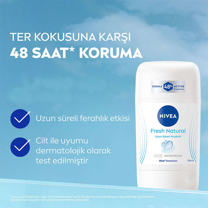 NIVEA Kadın Stick Deodorant Fresh Natural 50ml: Okyanus özlerinden gelen esansıyla uzun süren ferahlık sağlar.