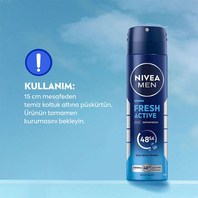 NIVEA MEN Erkek Sprey Deodorant Fresh Active 150ml: Okyanus özlerinden gelen esansıyla uzun süreli ferahlık ve mutheşem bir koku sunar.