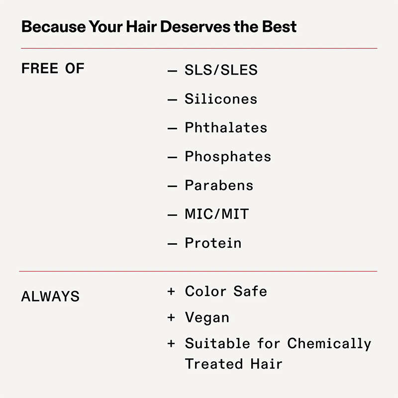 Water/Aqua/Eau, Bis-Aminopropyl Diglycol Dimaleate, Propylene Glycol, Cetearyl Alcohol, Behentrimonium Methosulfate, Cetyl Alcohol, Glycerin, Hydroxyethyl Ethylcellulose, Stearamidopropyl Dimethylamine, Quaternium-91, Cetrimonium Methosulfate, Cetrimonium Chloride, Tetrasodium EDTA, Polyquaternium-37, Ascorbic Acid, Phytantriol, Tocopheryl Acetate, Aloe Barbadensis Leaf Juice, Panthenol, Simmondsia Chinensis (Jojoba) Seed Oil, Citric Acid, Phenoxyethanol, Sodium Benzoate, Potassium Sorbate, Fragrance (Parfum), Benzyl Benzoate
