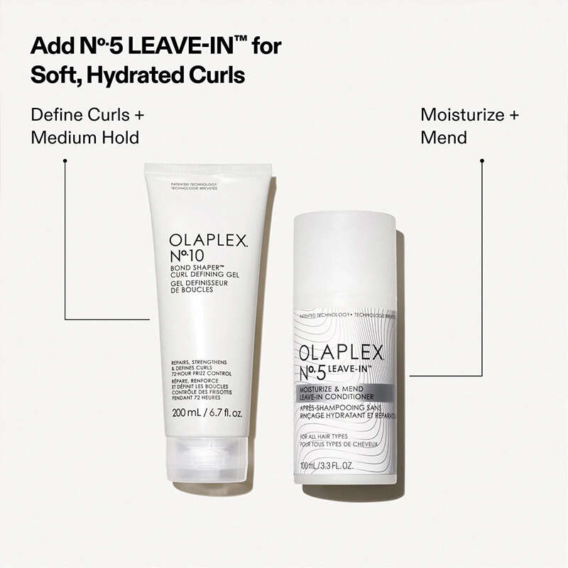 Olaplex Nº.10 Bond Shaper Curl Defining Gel, dalgalı, kıvırcık ve bukleli saçların doğal yapısını desteklemek ve canlandırmak için geliştirilmiş şekillendirme jelidir.