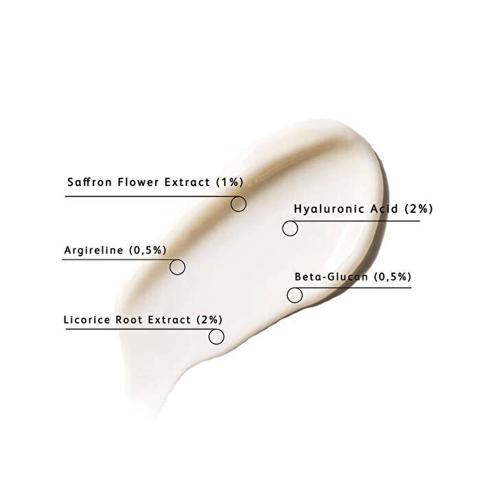 Aqua, Glycerin, Caprylic/Capric Triglyceride, Panthenol, Propylene Glycol, Glyceryl Stearate, Sodium Hyaluronate, Dimethicone, Niacinamide, Camellia Sinensis Leaf Extract, Phenoxyethanol, Ceteareth-20, Potassium Cetyl Phosphate, Sodium PCA, Ceteareth-12, Cetyl Palmitate, Cetearyl Alcohol, Acrylates/C10-30 Alkyl Acrylate Crosspolymer, Ethylhexylglycerin, Allantoin, Tetrasodium EDTA, Tocopheryl Acetate, Crocus Sativus Flower Extract, Dunaliella Salina Extract, Spirulina Platensis Powder, Palmitoyl Tripeptide-5, Citric Acid, Pantolactone, Sodium Benzoate, Potassium Sorbate