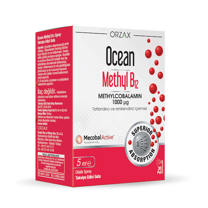 Ocean Methyl B12, metilkobalamin formda aktif B12 vitamini içeren gıda takviyesidir.