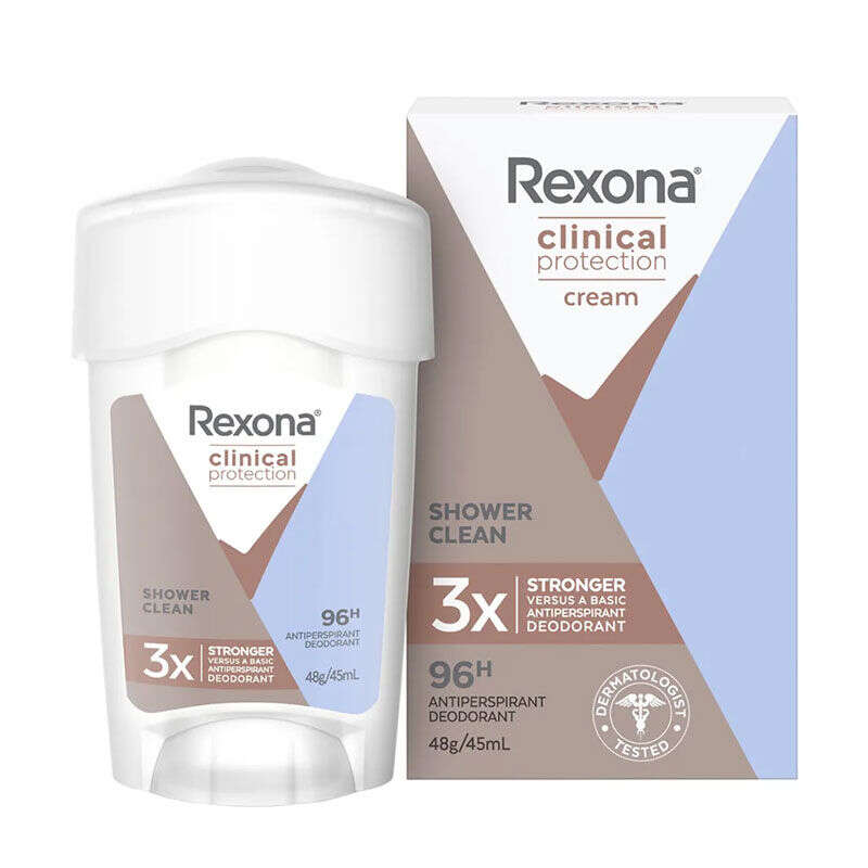 - Fazla terlemeye karşı geliştirilen krem stick deodorant Rexona Clinical Protection, hem ter kokusuna hem de ıslaklığa karşı güçlü koruma sağlar.