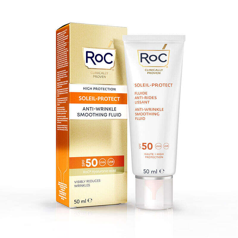 - RoC Soleil-Protect Smoothing Anti-Wrinkle Fluid SPF50 50ml, kırışıklık karşıtı etkili bakım sağlayan, cildi etkili şekilde güneşten korumaya yardımcı olan bir sıvıdır.