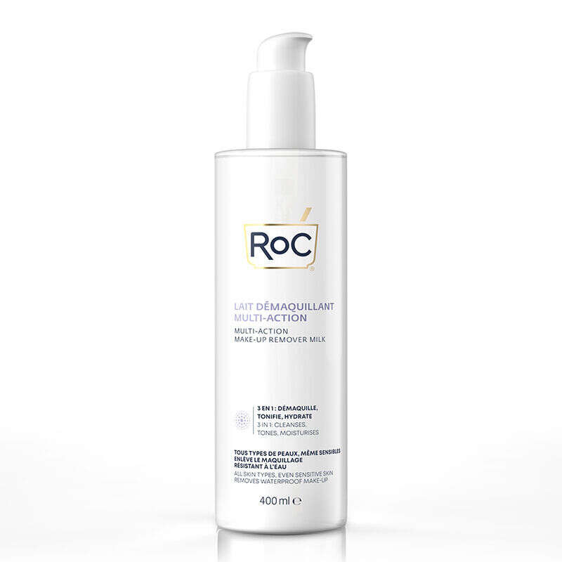 - RoC Multi-Action Make-Up Remover Milk 400ml, makyajı çıkaran 3'ü 1 arada su geçirmez bir süttür.