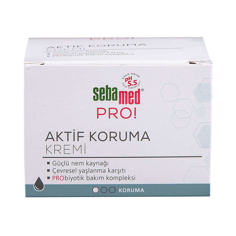- Sebamed PRO! Aktif Koruma Kremi, yaşlanmaya karşıetkin koruma sağlayan fermente pirinç ve biberiye ekstreleri içeren bakım kompleksi sayesinde; UVA filtresi çevresel yaşlanmayla savaşır.