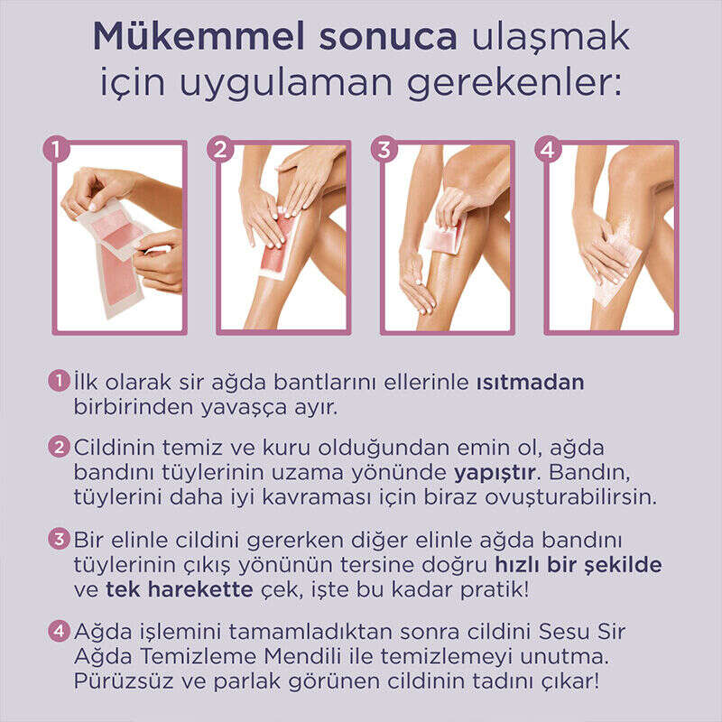 Ağda işlemini tamamladıktan sonra cildini Sesu Sir Ağda Temizleme Mendili ile temizlemeyi unutma.