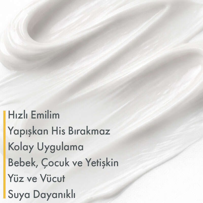 Bebek ve çocukların hassas cildi için özel olarak geliştirilen suya dayanıklı formülü, UVA ve UVB ışınlarına karşı nazik koruma sağlar.