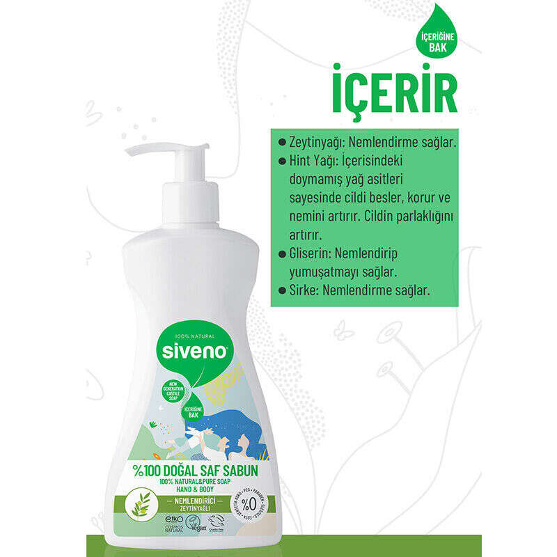 Hassas ciltlerde de rahatlıkla kullanılabilen el ve vücut için zeytinyağlı doğal sıvı sabun cildi temizlerken, içerdiği yağlar sayesinde ellere özenle bakım yapar.