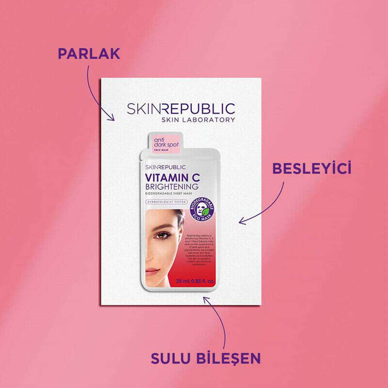 Vitamin C içerikli aydınlatıcı bir görünüm sağlayan yüz maskesi.