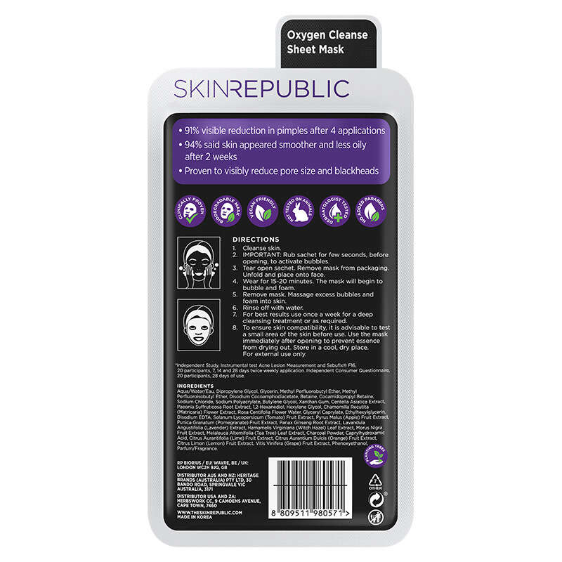 Skin Republic Bubble Purifying + Charcoal Face Mask Sheet 25 ml