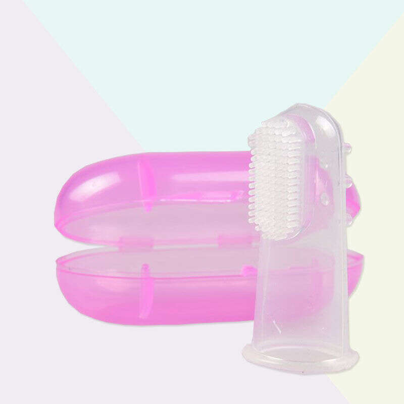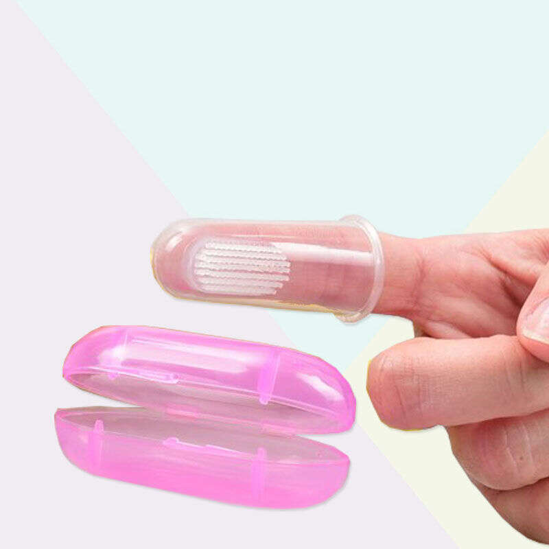Parmak fırçayı işaret parmağınıza takın, fırça yüzü ile dişlerini fırçalayabilir, kaşıma yüzü ile damaklarını rahatlatmak için masaj yapabilirsiniz.