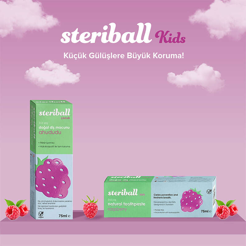 Steriball Çocuk Diş Macunları; ağız sağlığını, çevremizi ve ağız bakımına ihtiyacı olan çocukları önemseyen diş hekimleri tarafından geliştirilmiştir.