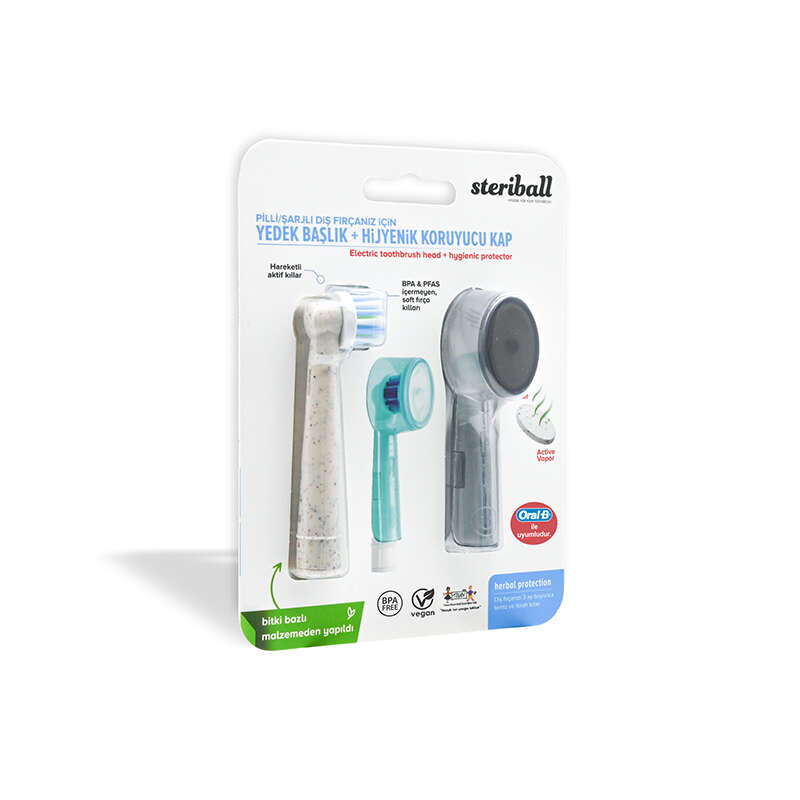 Streriball Pilli Şarjlı Diş Fırçanız için Yedek Başlık + Hijyenik Koruyucu Kap