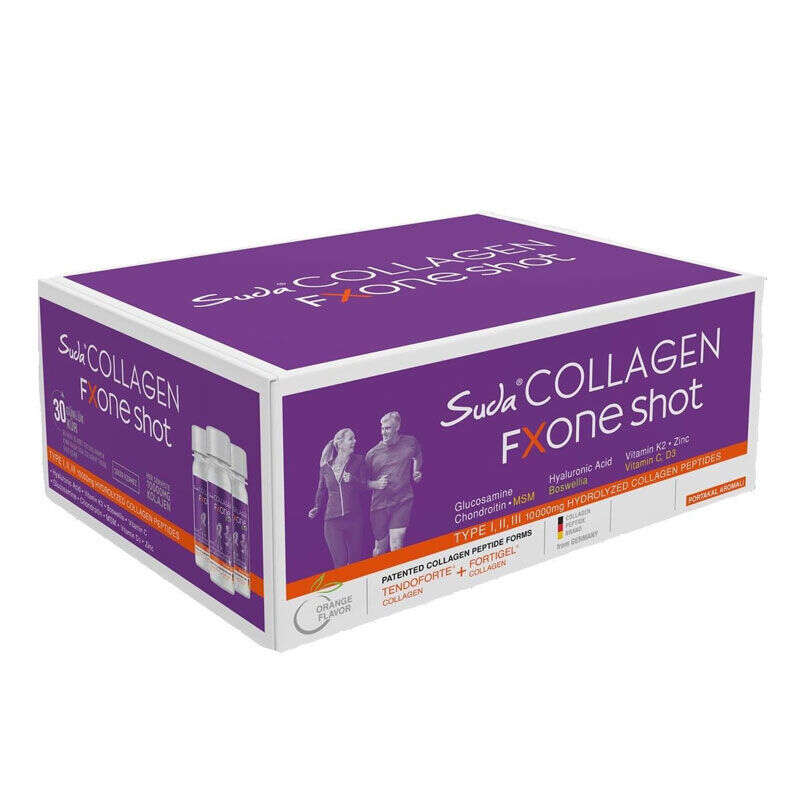- Suda Collagen FX ONE, 1 servisinde (1 içime hazır şişe) 10.000 mg kolajen peptit içerir.