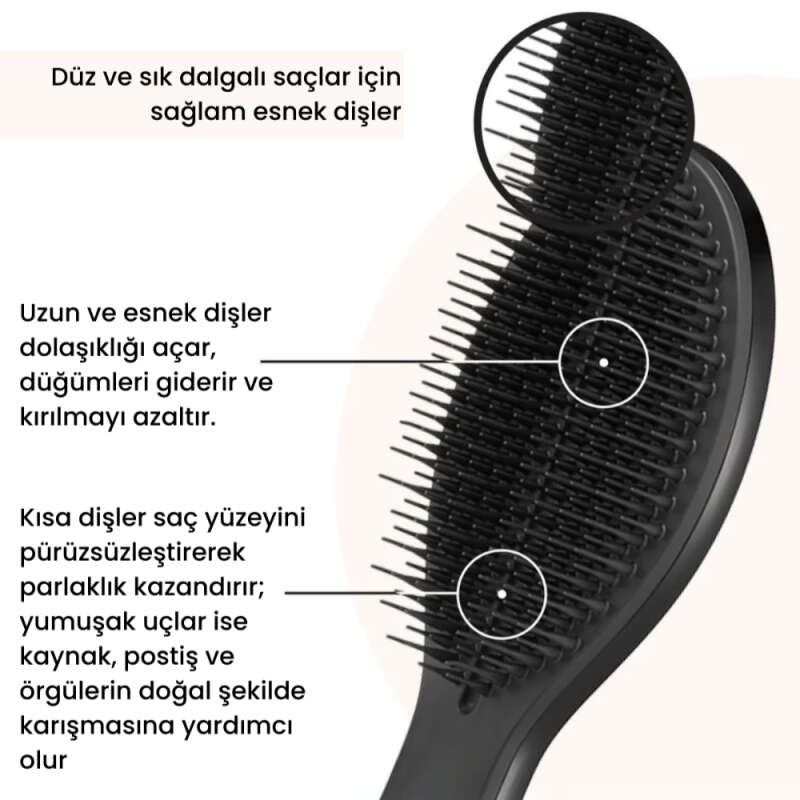 - Yenilikçi dişler gösterinin yıldızı olup, kabarıklığınızı mükemmelleştirmenize, saçınıza hacim veya doku eklemenize ve saç uzatmalarını, klipslerini ve örgülerini korumanıza ve karıştırmanıza olanak tanır.