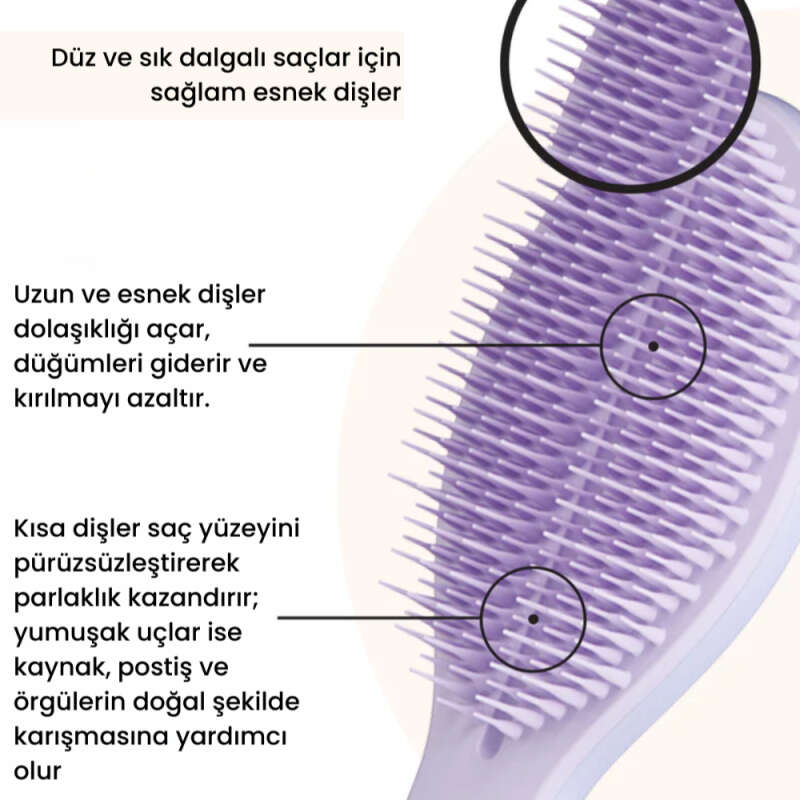 - Tangle Teezer The Ultimate Styler, kuru saçları şekillendirmek ve zahmetsizce saçlarda istenilen son şekli vermek için özel olarak tasarlanmıştır.
