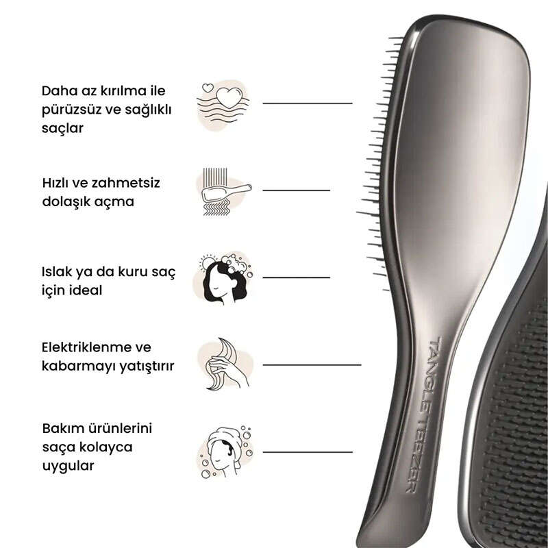 Uzun dişler dolaşıklıkları açarken, kısa dişler saçı pürüzsüzleştirir kusursuz bir ekip çalışması!