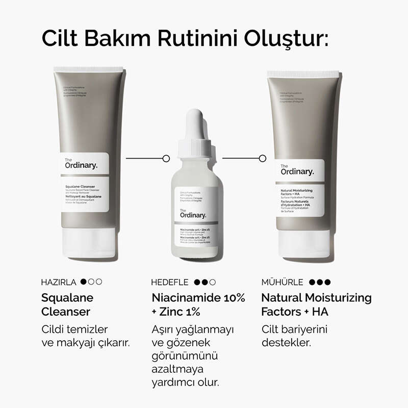 %10 Niasinamid + %1 Çinko serumu, Cildi pürüzsüzleştirmeye, daha eşit bir cilt tonu ve aydınlık bir görünüm sağlamaya yardımcı olan su bazlı bir formüle sahiptir. Gözenek sıkılaştırmaya yardımcı olur.Niasinamid (B3 vitamini) ve Çinko PCA içeren formülüyle cildin pürüzsüz görünmesini hedefler.