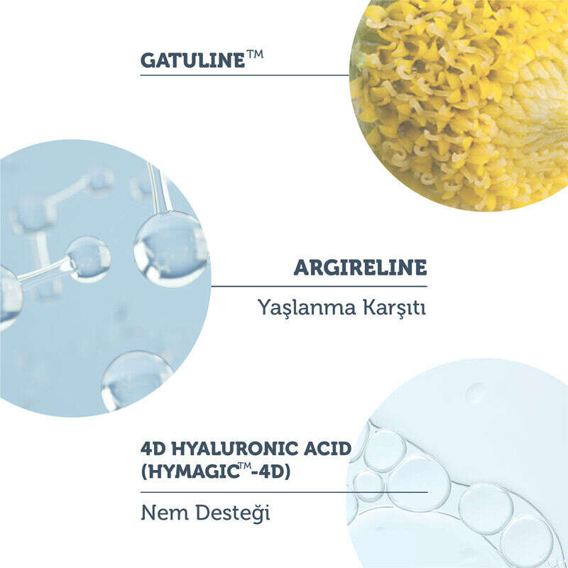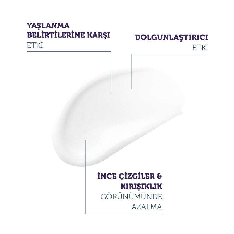 Yaşlanma belirtilerine karşı cildin güçlü bir savunma oluşturarak ince çizgilerin önlenmesi ve derin kırışıklıkların görünümünün azaltılmasında yardımcı olur.
