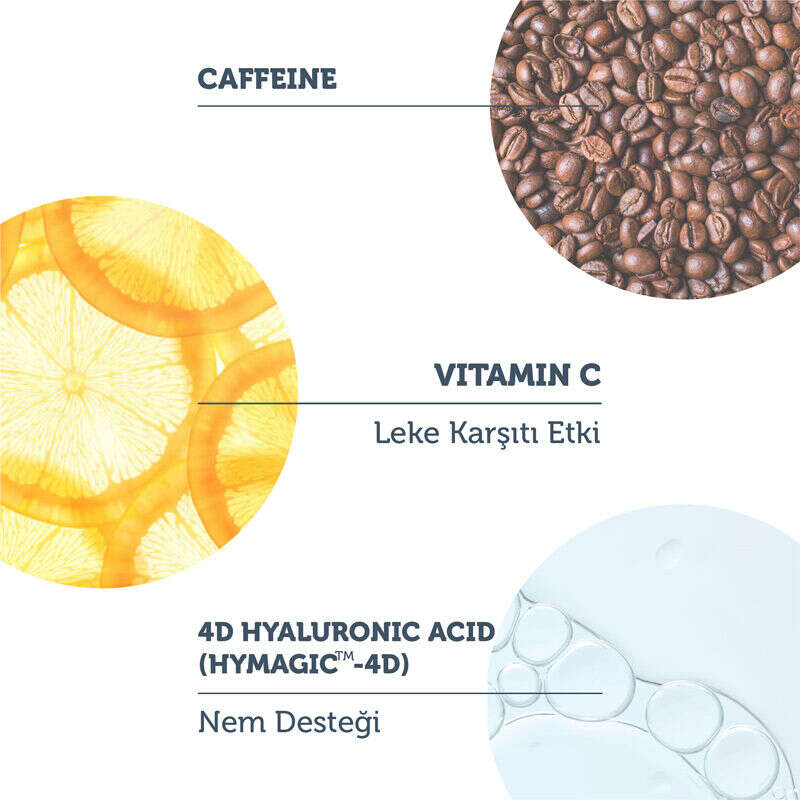 Göz çevresinde oluşan yaşlanma görünümünün azalmasına yardımcı olarak göz çevresine bakım yapar ve ışıltılı bir görünüm sağlar.Vegan ve Hayvan Dostudur.