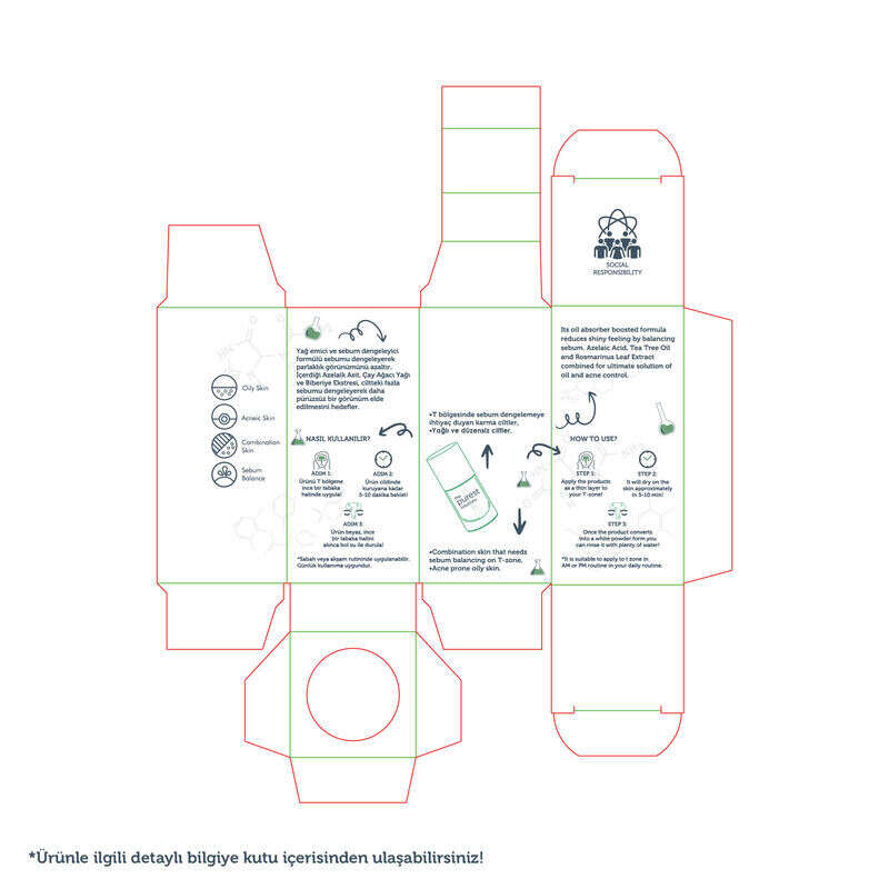 Yağ emici ve sebum dengeleyici formülü sebumu dengeleyerek parlaklık görünümünü azaltmaya yardımcıdır.