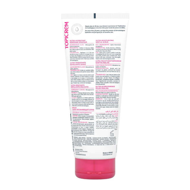 - Topicrem Yüz ve Vücut Ultra Temizleyici Peeling, sabun içermeyen nazik formülü ile cildinizi derinlemesine temizlerken, jojoba taneleri sayesinde cildi arındırır ve pürüzsüz bir cilt yüzeyi sağlar.