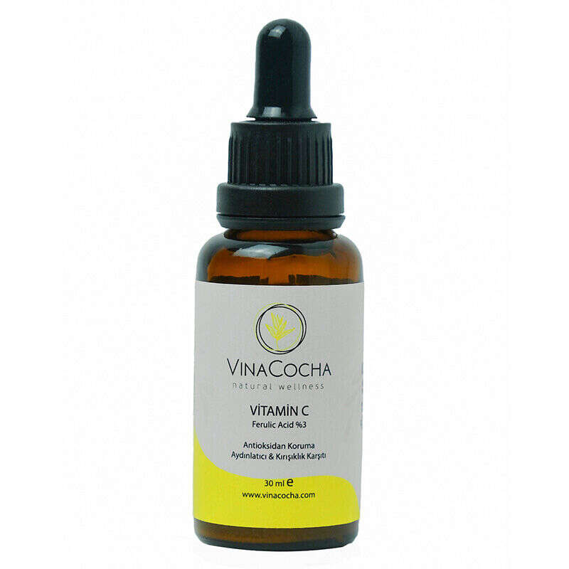 Cilde taze ve parlak bir görüntü verir. Vinacocha Vitamin C Ferulic Acid (%3) ;yeni nesil serumlar içerisinde oldukça popüler bir içerik olan “sodium ascorbyl phosphate” hammaddesinden elde edilmiştir.
