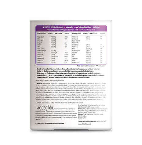 Multivitamin ve Mineraller İçeren Takviye Edici Gıda.