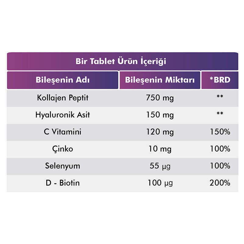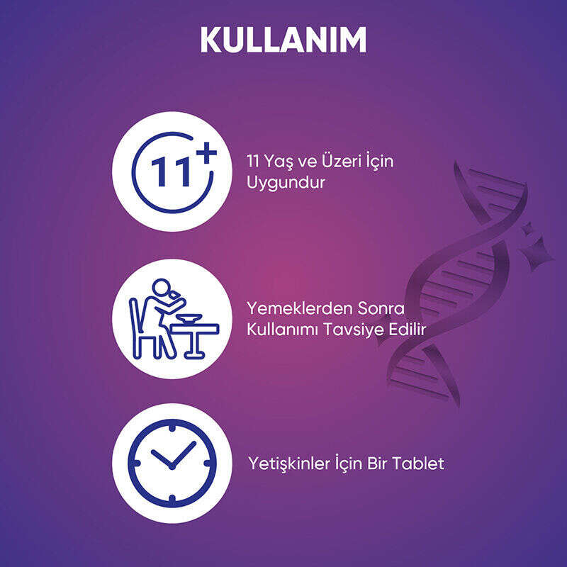 Tavsiye edilen günlük alım miktarı 11 yaş+ ve üzeri yetişkinler için 1 tablettir.