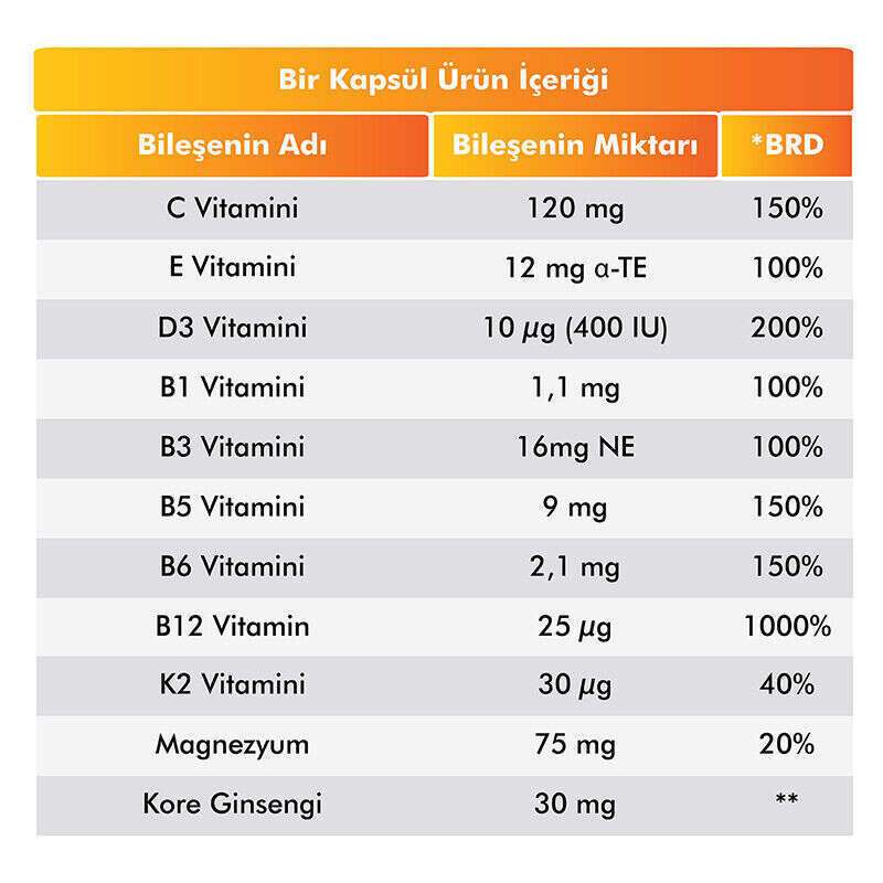 D3 Vitamini | 10 µg (400 IU) | 200% |