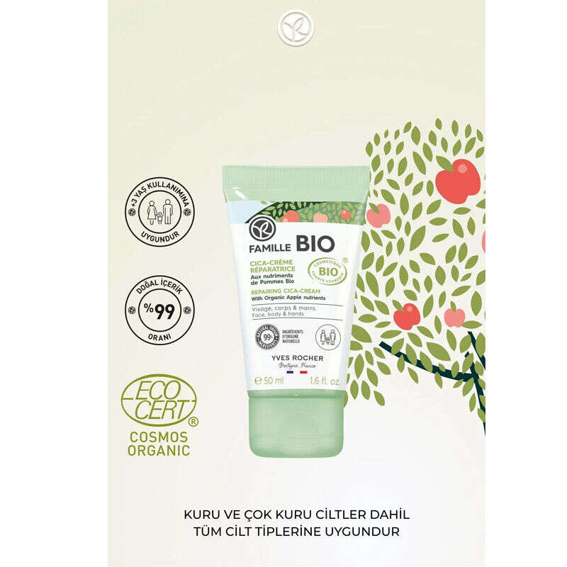 - Tüm ailenizin güvenle kullanabileceği Organik sertifikalı cica krem, cildi nemlendirir ve besler.