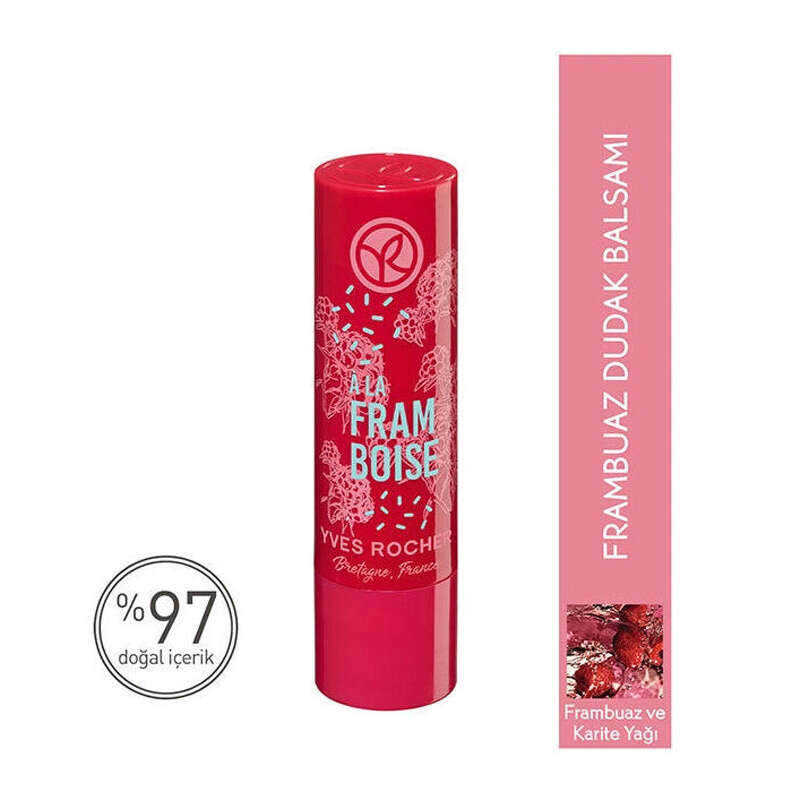Yves Rocher Frambuaz Dudak Balsamı, orman meyvesi frambuazın tazeleyici tadıyla beraber dudaklarınızın bakımlı görünmesini sağlar.