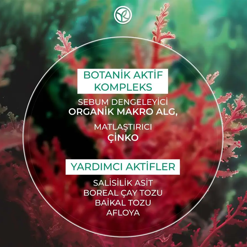 İçeriğindeki Patentli Organik Makro Alg sebum üretimini dengelenmesine ve sebum üretimini kontrol altına almasına yardımcı olur.