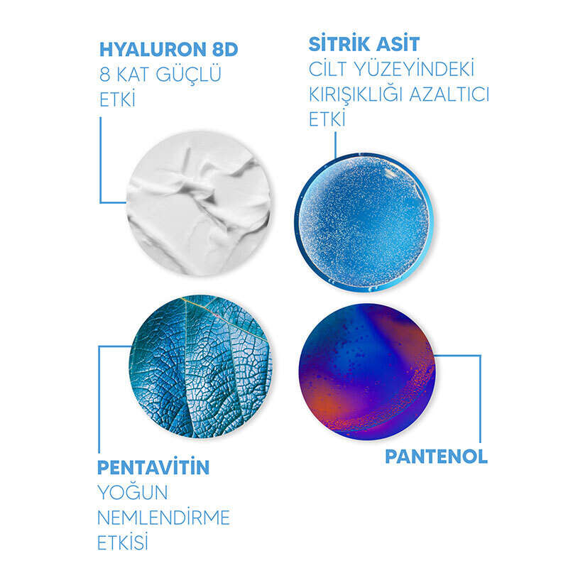- 8D nemlendirme teknolojisi ile cildi derinlemesine nemlendirmeye ve uzun süre nemli kalmasına yardımcı olur.
